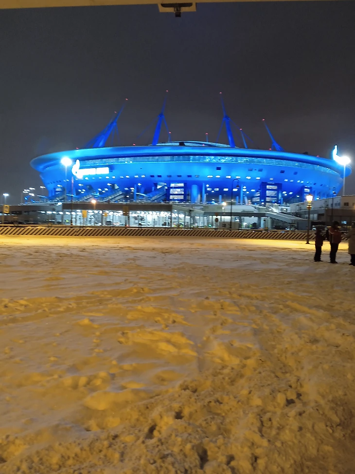 Итак, начнём путешествие с перехода с метро на поедстадионный досмотр. На улице было достаточно морозно. Хорошо, что на поле температура составляет +16°с. Итак, мы хорошо и без происшествий прошли осмотр - стадион на расстоянии вытянутой руки! Решили мы с папой прикупить шарф матча - на память. Очень красивый, кстати.