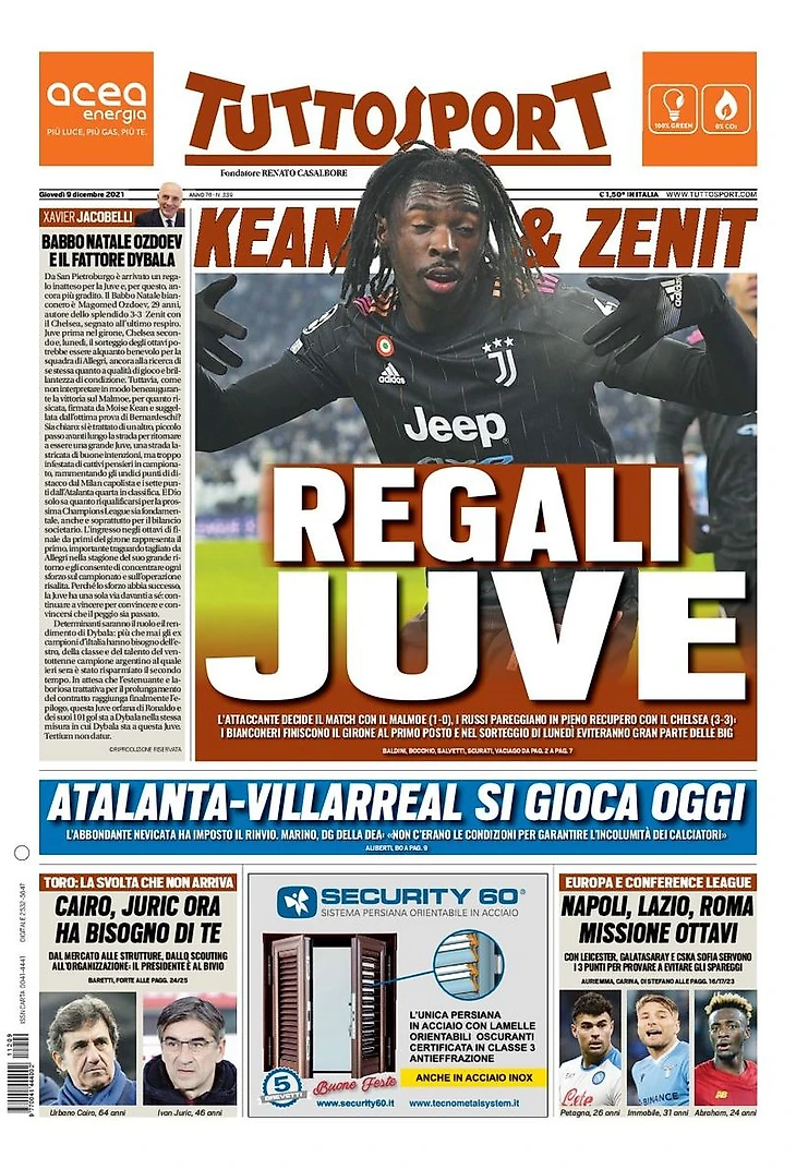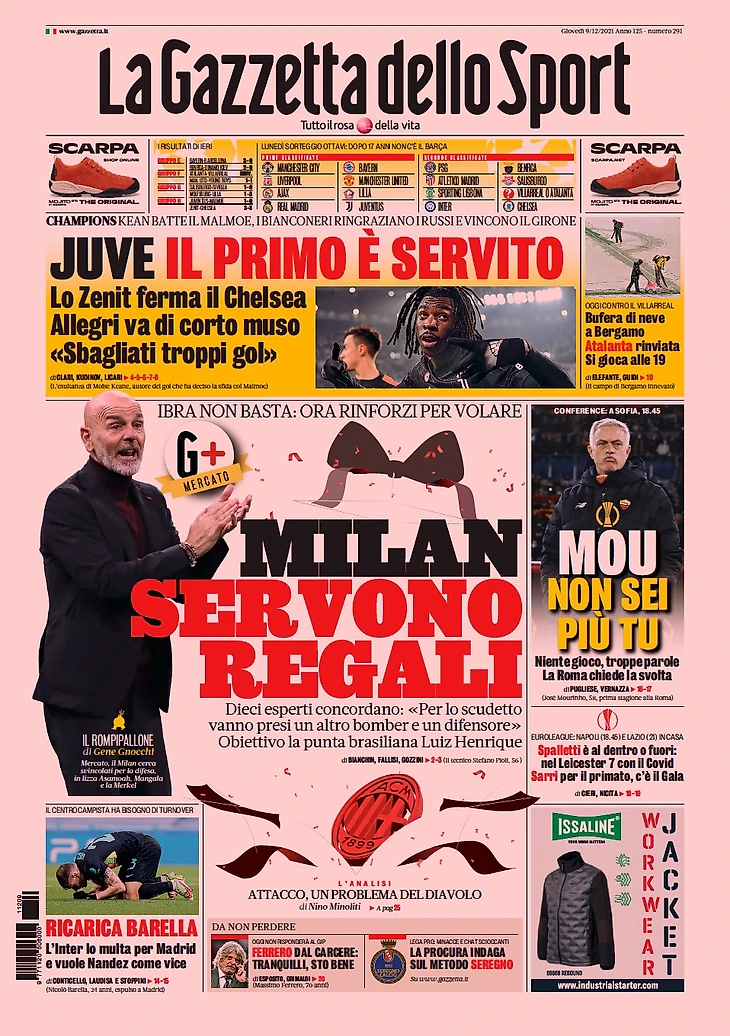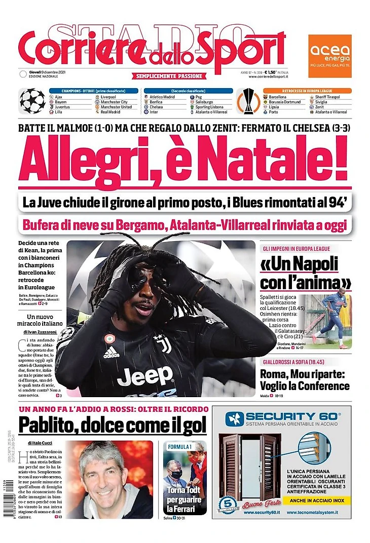Аллегри, это Рождество! Заголовки Gazzetta, TuttoSport и Corriere за 9 декабря