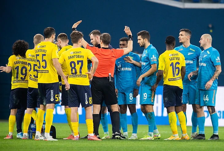 «Зенит» продолжал владеть территориальным и игровым преимуществом, и серия подходов к воротам после 60-й минуты закончилась закономерно – пенальти в ворота Песьякова. Здесь Альмквист оказался антигероем эпизода, мяч угодил именно в его руку. Ростовчане пытались спорить, упирая на то, что мяч в руку отскочил от груди, а игры конечностью не было. Но неестественное положение сводило их шансы на нет. Клаудиньо с точки оформил дубль.