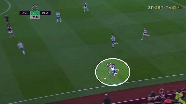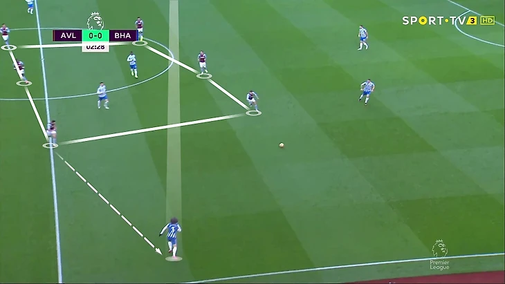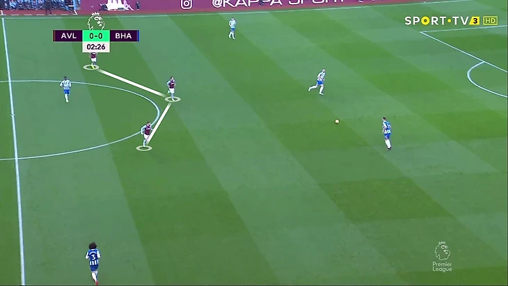 «Вилла» направляла атаки и оставляла одного оппонента свободным, что снижало шансы на высокие отборы – то есть структура была менее смелой, чем обычно. При этом зонный базис с акцентом на закрытие центра прослеживается всегда. Именно этот элемент Джеррард уже отладил в «Вилле».
