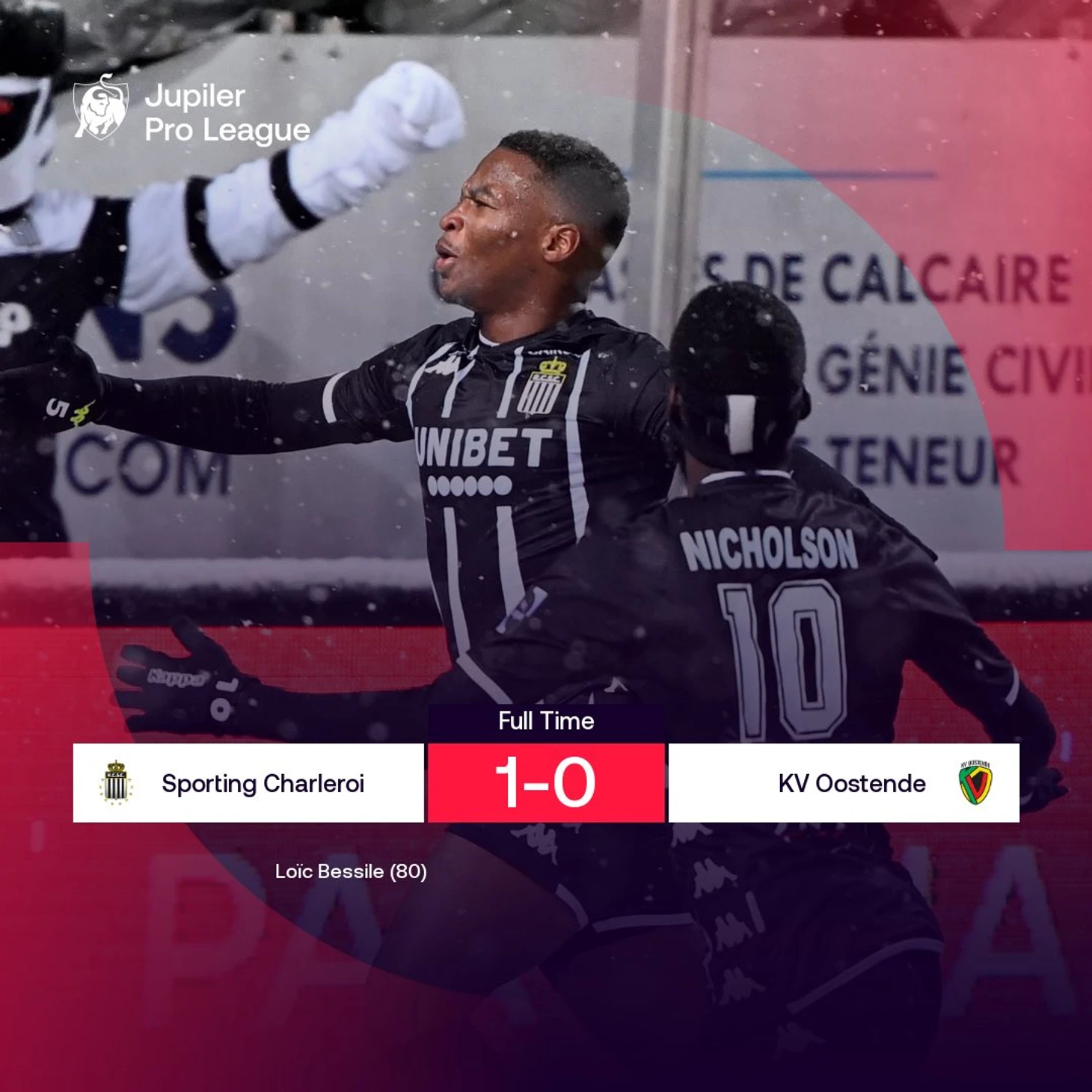 «Шарлеруа» хорошо начал оба тайма, «Остенде» же лучше смотрелся примерно с 20-й минуты до перерыва и в последние полчаса. Но гости, хоть и не особенно уступили по атакующей активности, били менее опасно. У вратаря «зебр», конечно, тоже была работа, но в основном отдувался голкипер «Остенде» Юбер. Заснеженный газон не помешал «зебрам» наиграть на пару-тройку голов, но забили они в итоге только один. Благодаря второй победе подряд «Шарлеруа» сразу закрепился в четверке как минимум до конца тура. А вот «Остенде» подкрепить успех прошлого тура не удалось. Команда проиграла шесть из семи последних матчей чемпионата и опустилась на 13-ю строчку.