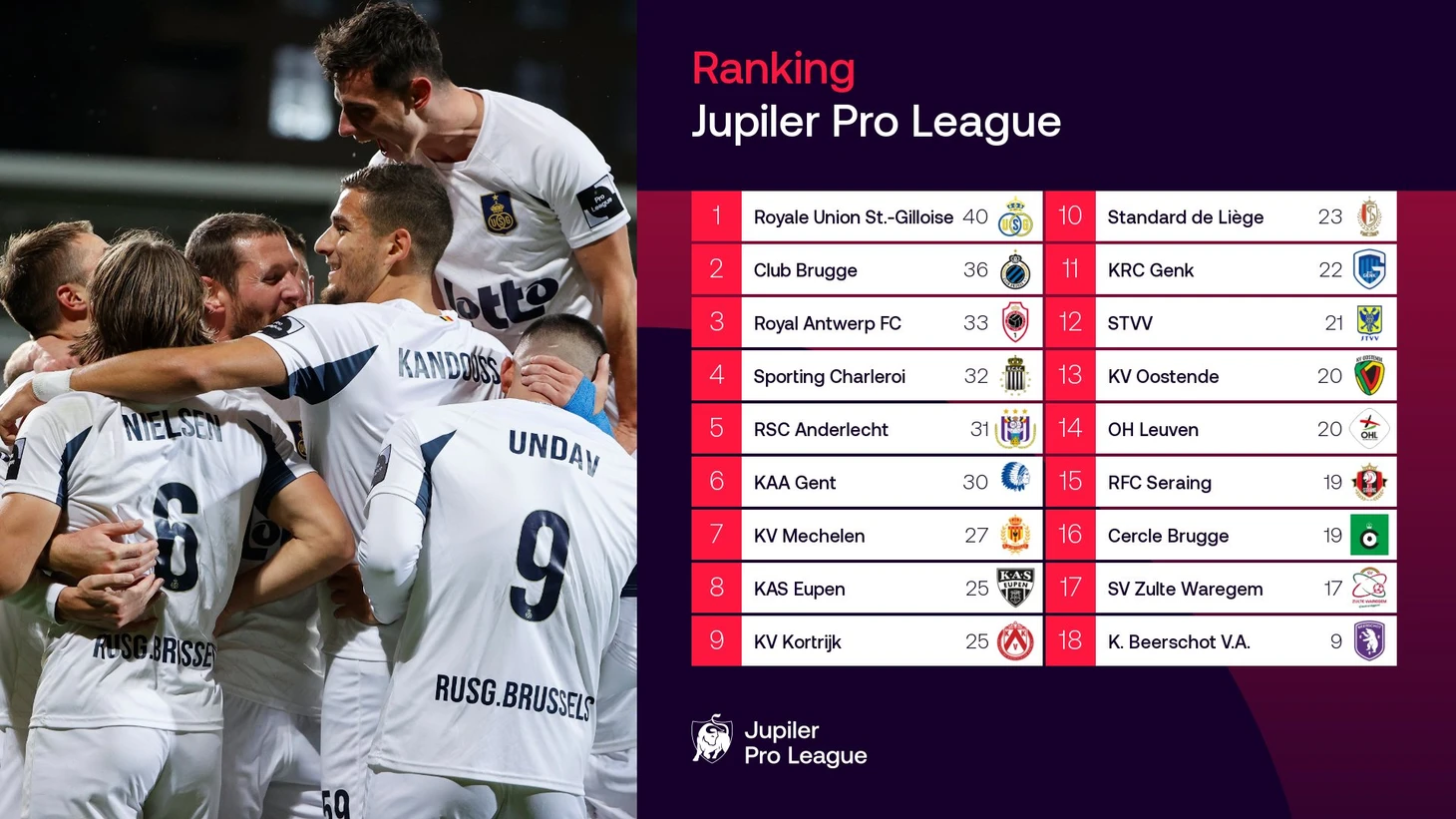 Турнирная таблица чемпионата Бельгии по итогам 18-го тура
