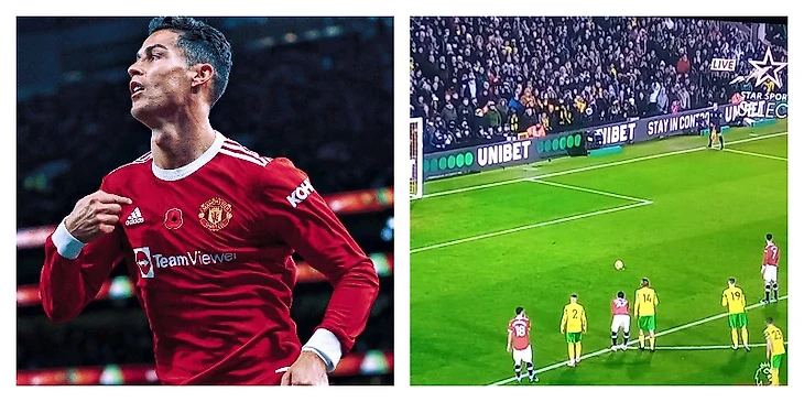 Криштиану Роналду реализовывает пенальти и выводит «МЮ» вперед в матче с «Норвичем».