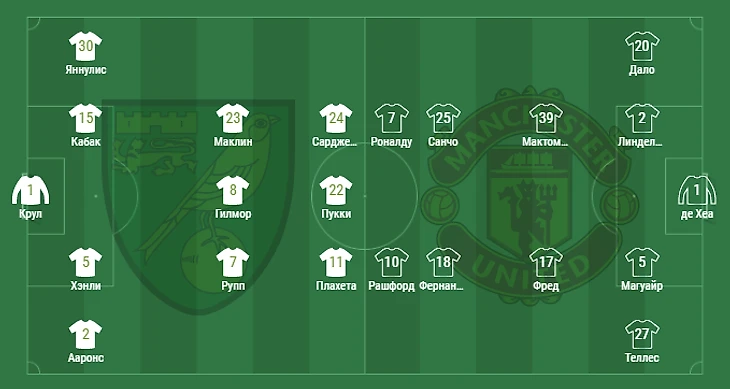 Сегодня Юнайтед вышел тем же составом, что и в последних матчах. Теллес и Далот все лучше и лучше вписывается в основу, а схема 4-2-2-2 начинает смотреться не так и дико.