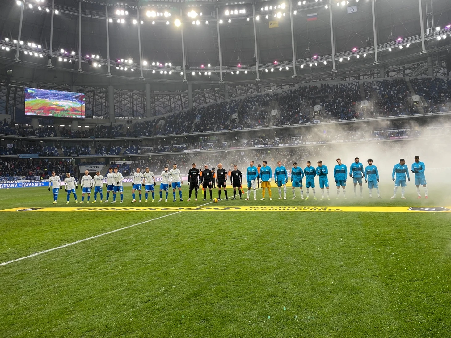 На подходе к стадиону можно было понять, что будет аншлаг на трибунах «ВТБ Арена». Болельщиков было очень много, а с проходом за час до стартового свистка не было. Но минут за 15-20 до начала матча очереди все же образовались. Ну а как еще могло быть при статусе «топ» сегодняшней встречи.