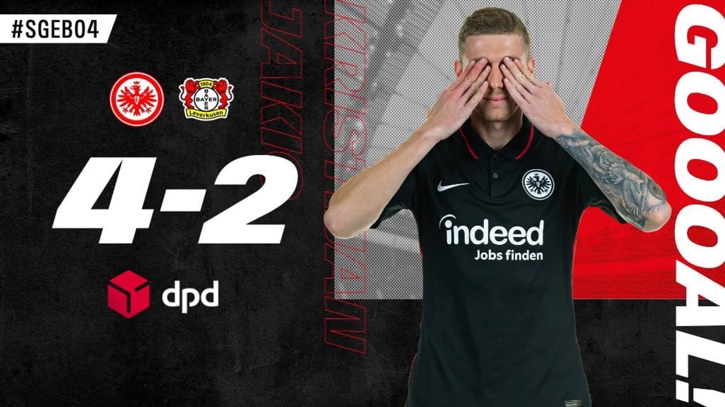 Продолжив создавать опасные моменты у ворот «Байера», «Айнтрахт» на 66 минуте забил ещё: красивейшим ударом в девятку отметился Кристиян Якич.