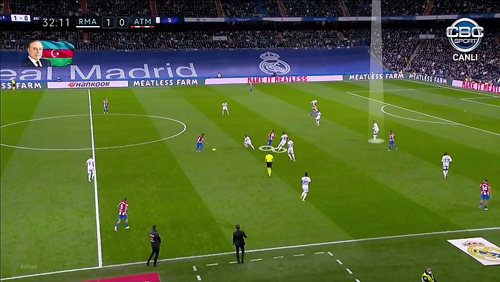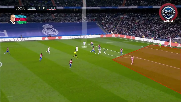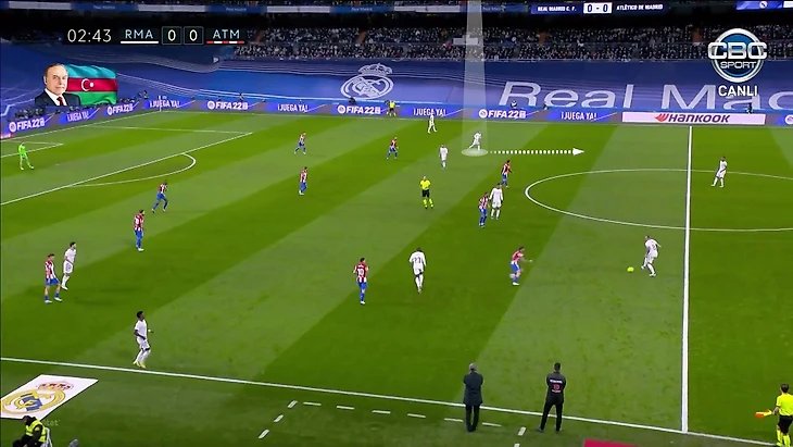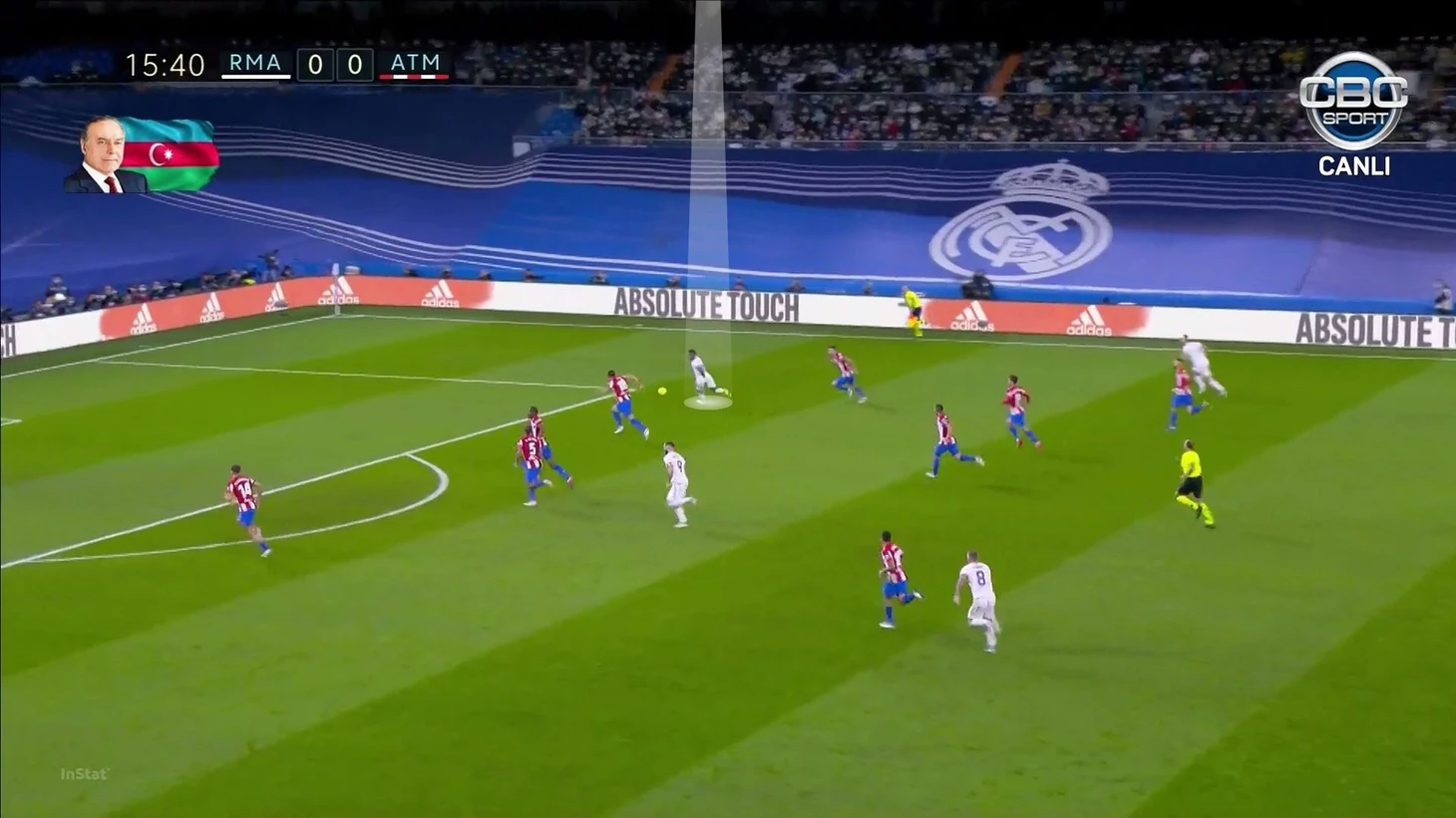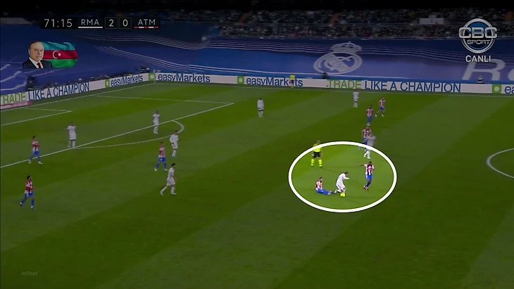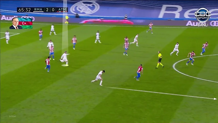 • Чтение маневра со смещениями форвардов «Атлетико». В такие эпизоды Каземиро становился центральным защитником, что позволяло Эдеру Милитао и Давиду Алабе действовать смелее.