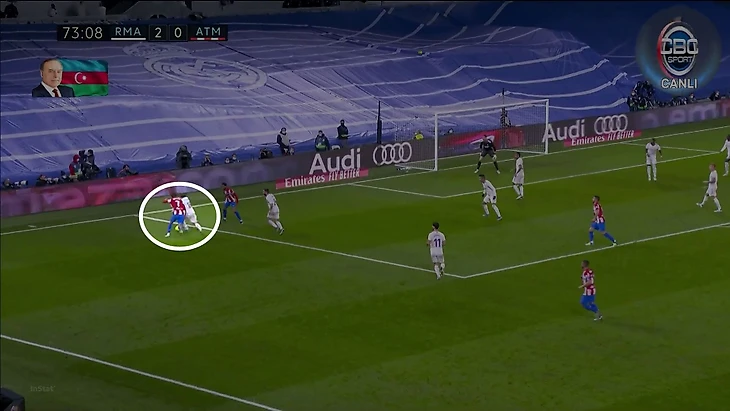 В начале второго тайма «Реал» был пугающе близок к потере контроля. В перерыве Симеоне провел двойную замену – вышли Тома Лемар и Жоау Феликс. Оба нагружали зону около левого фланга (Лемар там располагался, а Феликс туда смещался). Это привело к порции хороших шансов.