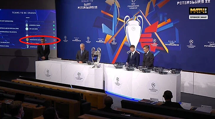 Перенесемся на несколько секунд назад. Вот ассистент этой жеребьевки, а в остальное время директор клубных турниров УЕФА Михаэль Хезельхвердт совершает ключевую ошибку. Берет шар из корзины с надписью Manchester United.