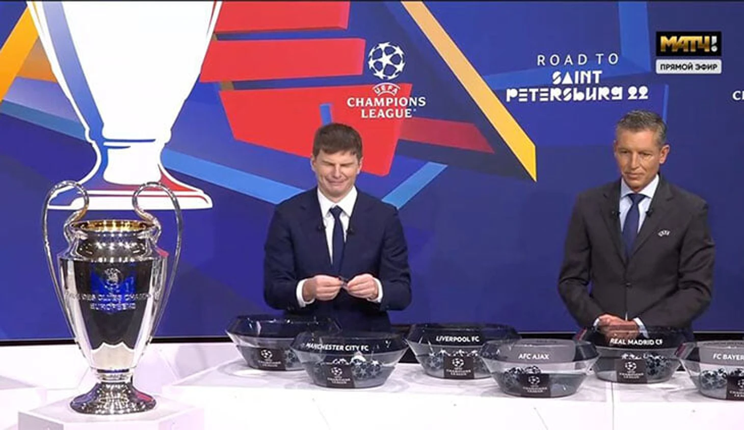 Андрея Аршавина попросили повторить, он покрутил шары и снова вынул «Манчестер» – только «Сити». И сам фирменно посмеялся, абсурд пробил его прямо на сцене.