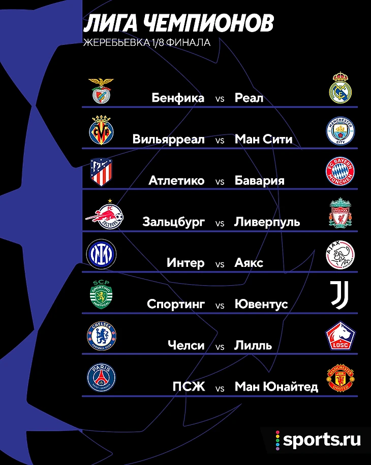 17.16. Нам напомнили, что первые матчи запланированы на 15-16 и 22-23 февраля 2022 года, ответные игры пройдут 8-9 и 15-16 марта.
