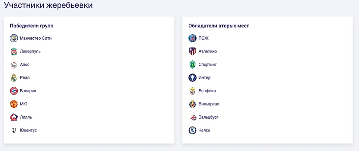 16.42. Итак, давайте освежим в памяти процедуру. В 1/8 сходятся победители групп против команд со вторых мест. Но есть два условия: в 1/8 не могут встретиться клубы из одной страны и те, кто играли друг с другом в группе. Ничего сложного, но и в этом можно запутаться.