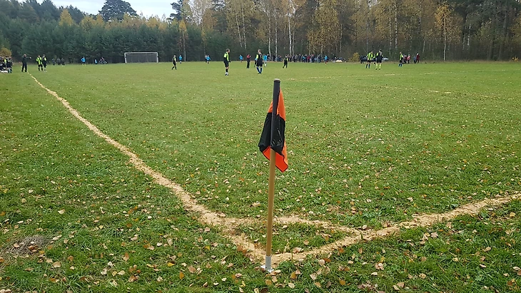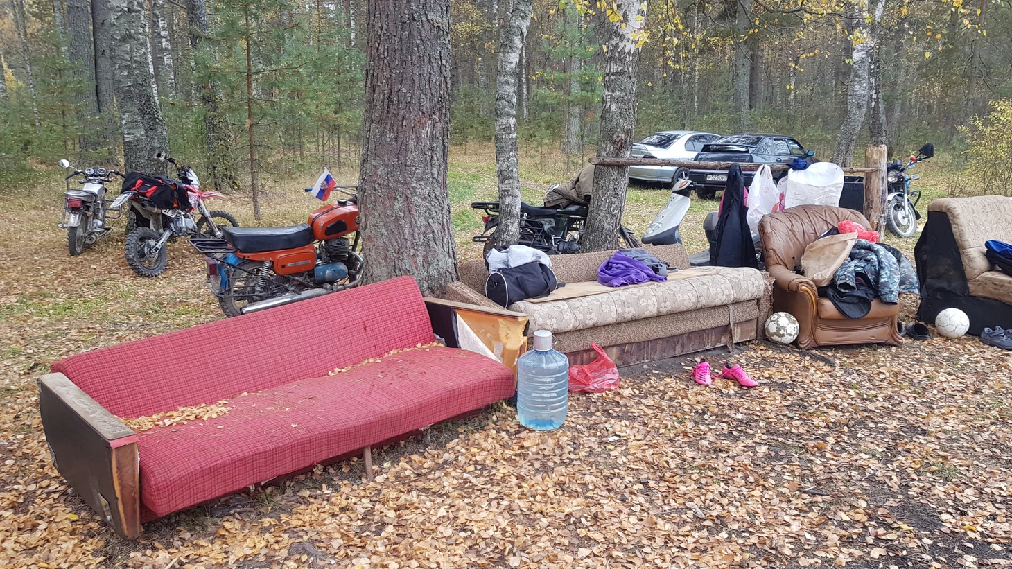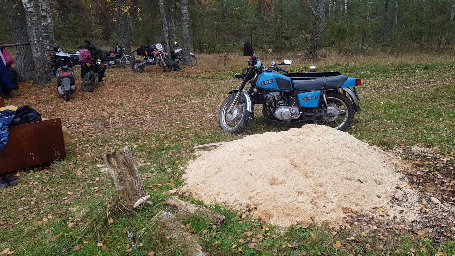 Подхожу к полю, расположенному на окраине деревни, в лесу. Аутентика русской футбольной жизни во всём её великолепии: не слишком ровное, но и не заросшее поле в окружении сосен и берёз, с тропинкой через (всё как ты любишь), разметка опилками, старые диваны, функционирующие как раздевалка, мотоциклы – основной вид транспорта для игроков и болел, гул зрителей, живо реагирующих на действия «своих», и витающий над всем этим лёгкий флёр матерка с поля.
