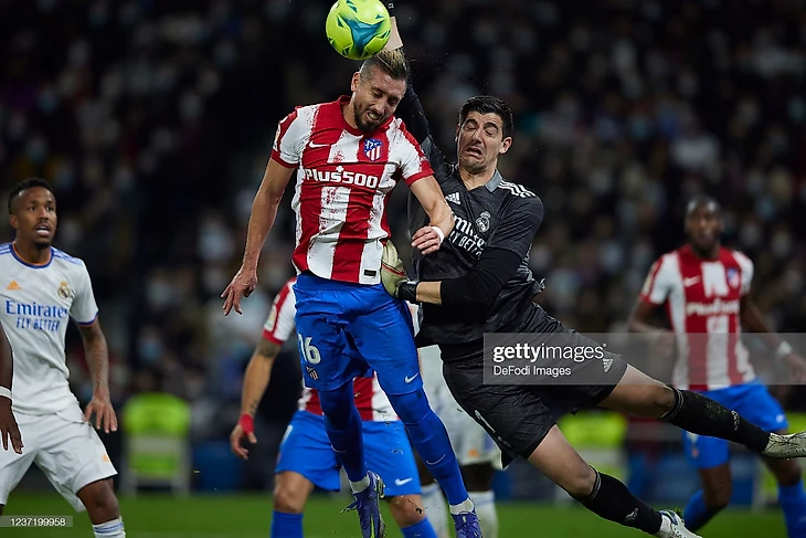 После пропущенного гола матч проходил в том же ключе с небольшим перевесом гостей но все попытки приблизится к штрафной соперника рушились об оборонительную стену Реала, в основном мяч ходил через левую бровку «сливочных» поочередно переходя от одной команды к другой, присутствовало много борьбы и мелких нарушений с обеих сторон. На 33 минуте, после одного из таких нарушений Атлетико заработал стандарт на линии штрафной соперника, Гризманн опасно пробил но Куртуа вытащил мяч из ближней для себя девятки. После чего инициативу перехватил Реал и продолжал контролировать игру до конца тайма, пытаясь обострять игру через Винисиуса который имел неплохой момент на 38 минуте, Каземиро отдал отличную скрытую передачу в штрафную на бразильца, а тот пытался перебросить Облака но голкипер смог отразить удар.