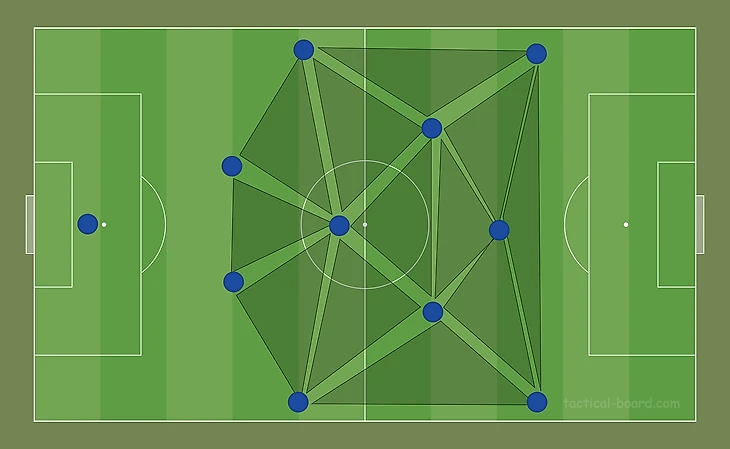 Ещё одним преимуществом данной формации является тот факт, что она позволяет создавать треугольники по всему полю, что необходимо для контроля и грамотной циркуляции мяча.