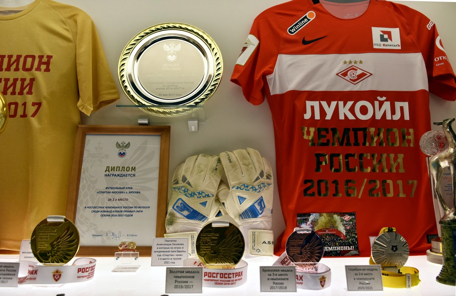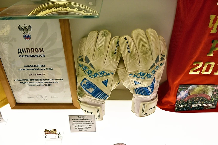 Александр Селихов передал в дар нашему Залу Славы свои вратарские перчатки, в которых он играл в матчах Лиги Европы, где «Спартак» занял первое место в своей группе.