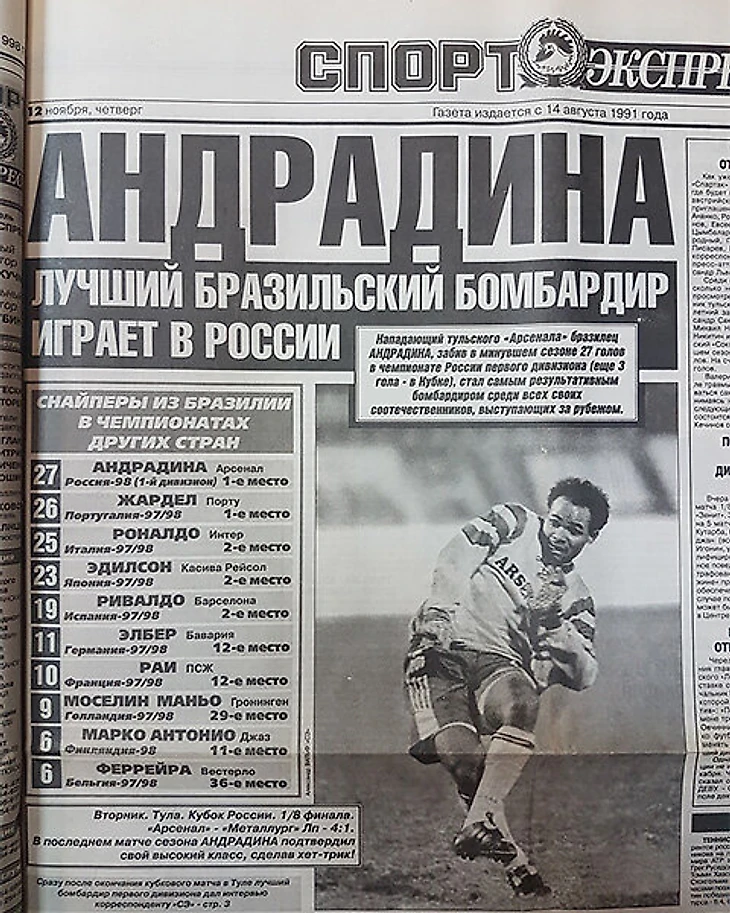 На информационном поле Трахтенберг поддерживал «Арсенал» так мощно, что в ноябре 1998-го «Спорт-Экспресс» назвал Андрадину самым результативным бразильцем в мире, поставив 27 его голов в Первой лиге выше 25 голов Роналдо в Серии А и 19 – Ривалдо в Примере.