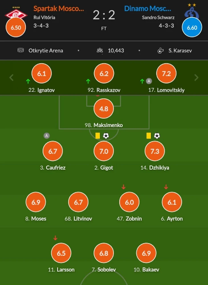 Литвинов - до матча с "ЦСКА" не провел на поле при Руе ни одной минуты в РПЛ. А как мы помним, тогда Литвинов был вынужден играть из-за отсутствия альтернатив. Следовательно, Руй был заложником, ибо вариантов больше банально не было. Я бы не считал прогресс Литвинова успехом Руя, его к основе подтянул Тедеско, а португалец был вынужден ставить молодого игрока.