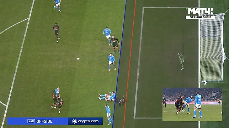 🔎 ВАР-споры в Италии: гол «Милана» отменили из-за офсайда Жиру. Оливье в этот момент лежал на газоне под защитником «Наполи»