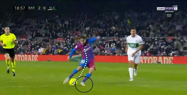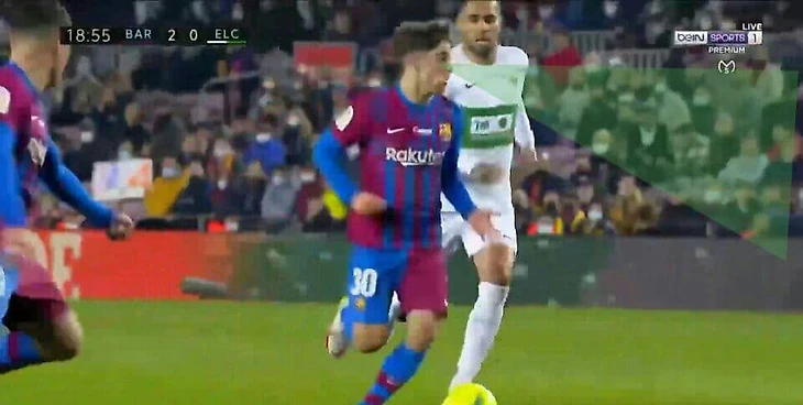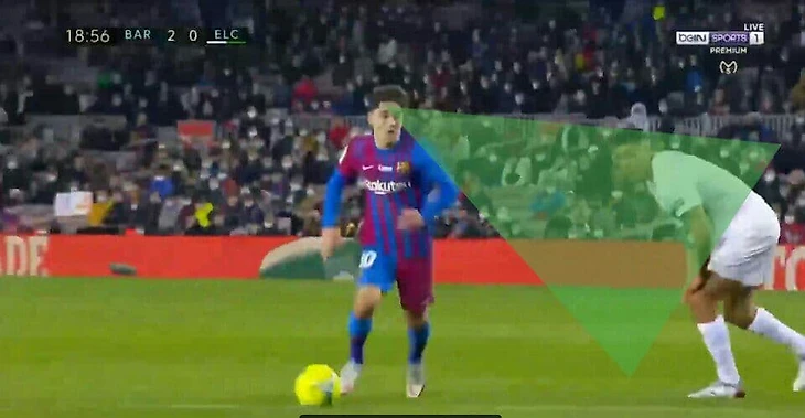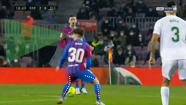 4. С помощью такого первого касания Гави намного улучшает свою позицию и входит в пространство перед защитной линией.