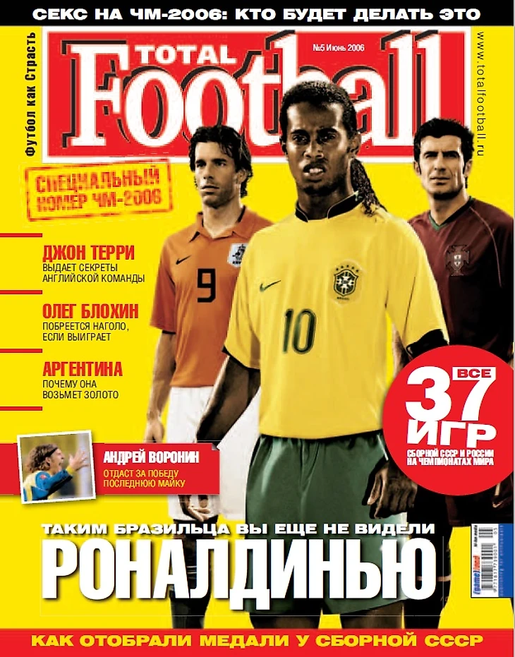 А вот и настоящий первый номер – вышел уже в 2006 году. Тут красуется будущий эксперт Володька, а редакция задается вопросом – Руни или Робиньо: кто лучше? Тогда это действительно казалось актуальным, но совсем скоро бразилец на фоне англичанина просто потеряется.