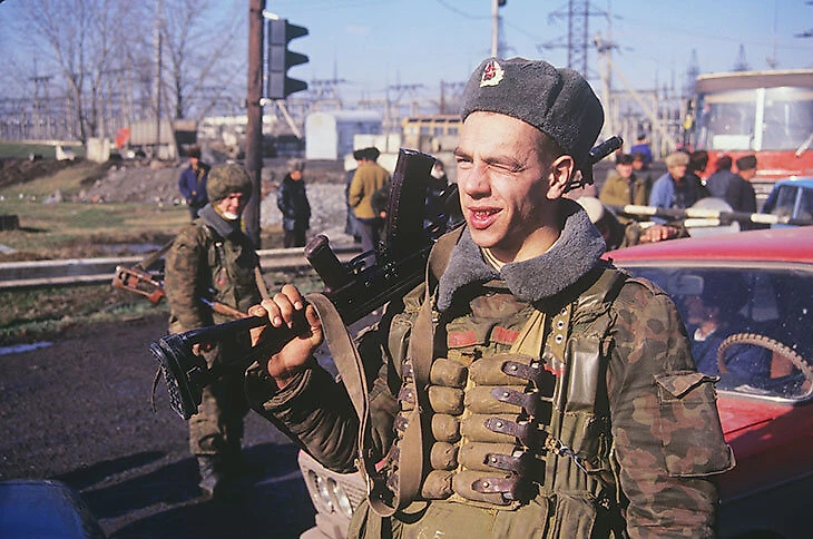 Бойцы в дни осетино-ингушского конфликта 1992 года в окрестностях Владикавказа