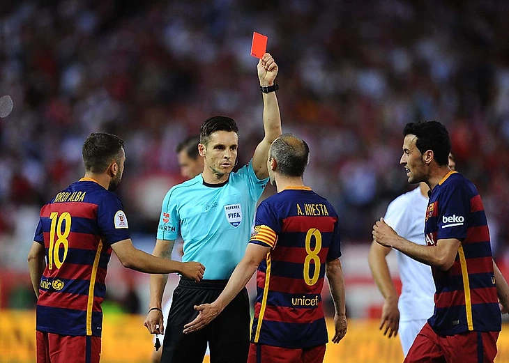 Что до его отношений с «Барселоной», то матчи «сине-гранатовых» Дель Серро Гранде судил 36 раз. 29 игр каталонцы свели к победе, 4 — к ничьей, в трех уступили. В этом сезоне Карлос дважды имел дело с «Барселоной»: зафиксировал нули с «Кадисом» в сентябре, а также минимальную победу над «Эспаньолом» в ноябре (назначил пенальти, который реализовал Депай). К слову, в 204 матчах Ла Лиги этот судья назначил 67 пенальти, показал 1032 желтых, 27 желто-красных и 23 красных карточки.