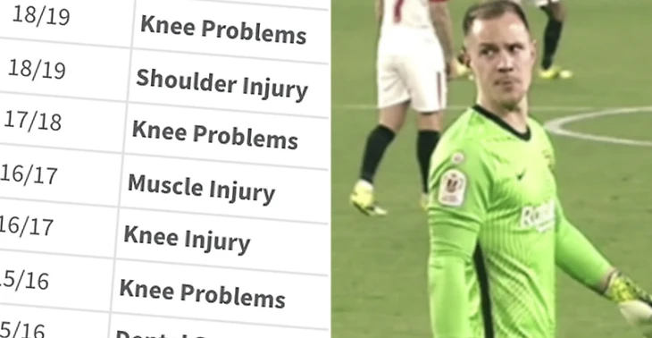 Как сообщает Diario Sport, Марк-Андре тер Стеген по-прежнему страдает травмой колена, полученной в 2020 году.