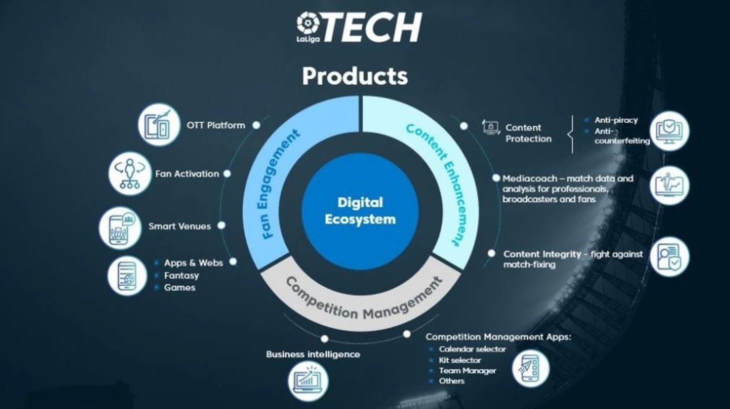 LaLiga Tech— это отдельная структура в составе Ла Лиги, цель которой — ускорить цифровую трансформацию отрасли, используя опыт, который обеспечивает инновации Ла Лиги с 2014 года. LaLiga Tech несет ответственность за управление экосистемой технологических продуктов и услуг для Ла Лиги, одновременно предлагая те же услуги более широкой аудитории в виде управляемых облачных сервисов.