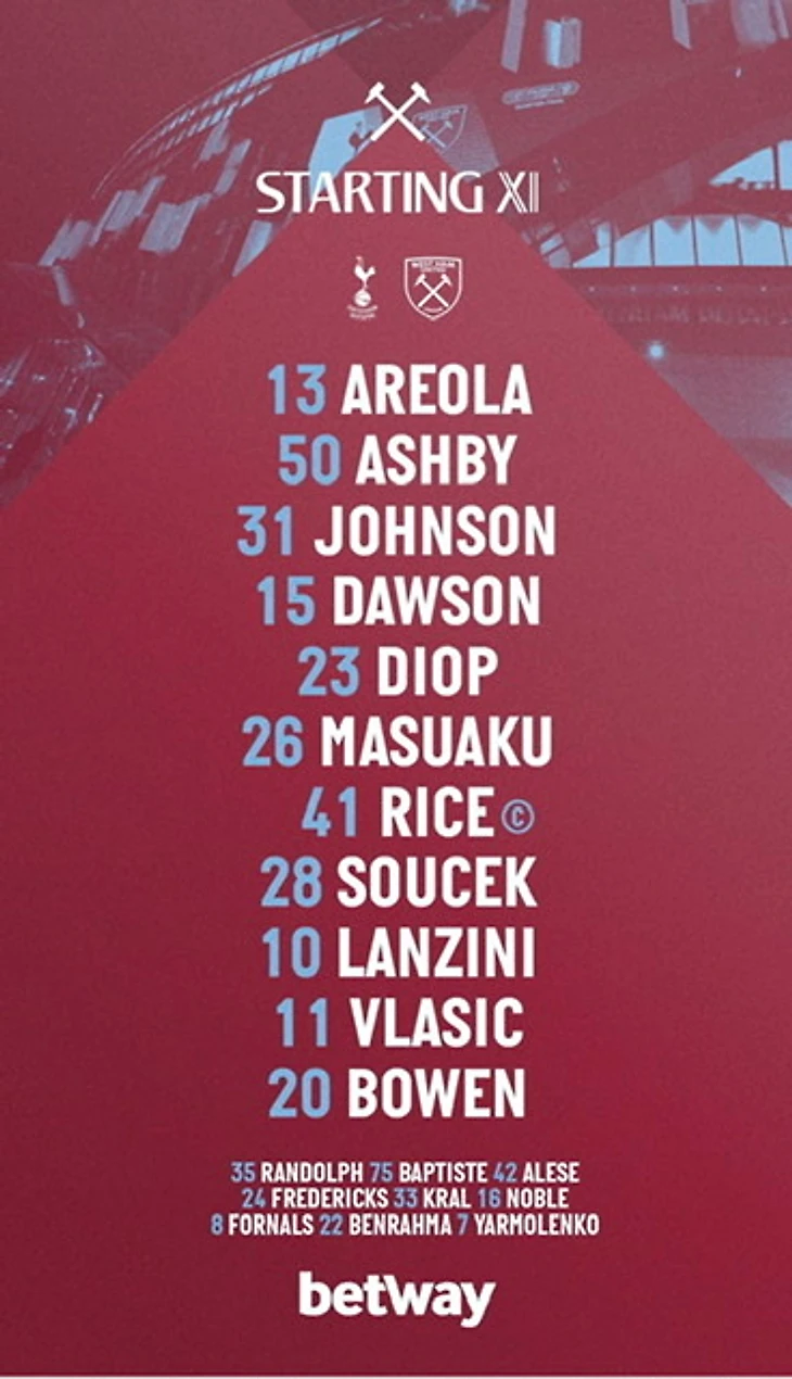 По заявке Конте, хочется отметить, что из-за сложного графика приходиться ратировать состав. Например, вместо Эмерсона играл Доэрти, Моура вместо Сона, Регилон вместо Сессеньона, Хьёберг вместо Уинкса, Бергвейн вместо Али. По расстановке видно, что крайние полузащитники должны были играть по всему флангу, с чем они блестяще справились, отрабатывая и в защите, и в нападении. У Давида Мойса отсутствовал один из главных бомбардиров и лидеров команды Майкл Антонио. Возможно, из-за этого «молотобойцы» не реализовали большое количество моментов во второй половине встречи. Теперь перейдём к разбору самой игры.