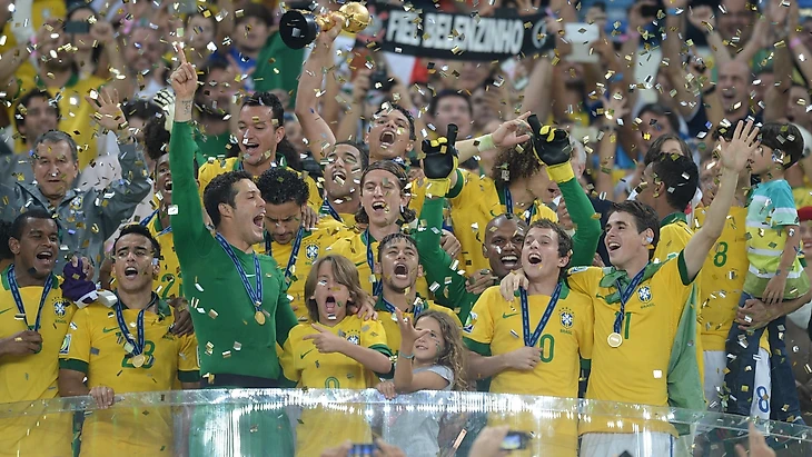 2013 – и снова Бразилия! В финале разгромлена потухающая Испания Дель Боске – 3:0. Тут уже проявились новые герои – Фред и Неймар забили, трофей поднял Тиаго Силва.