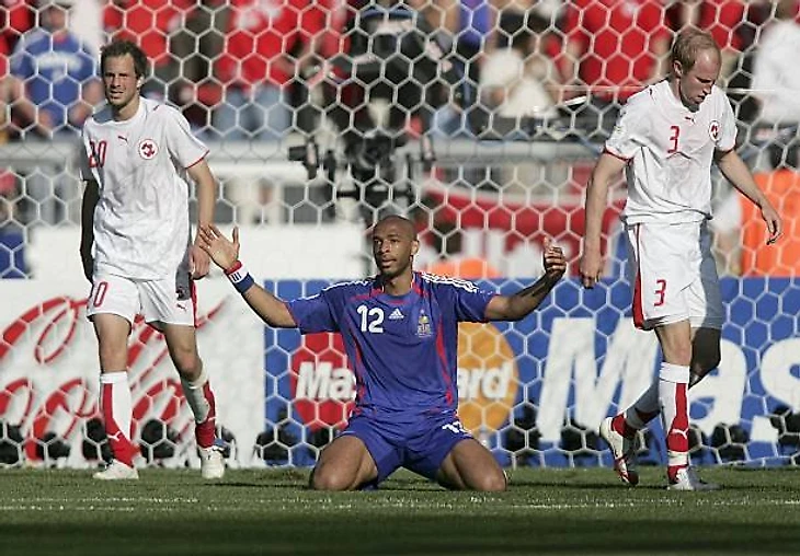 В первом туре французы встречались со сборной Швейцарии, с которой «Ле блё» были в одной отборочной группе к ЧМ, тогда команда Коби Куна смогла в обеих встречах отобрать очки у команды Доменека, сыграв в нулевую ничью дома и 1:1 на выезде. В этот раз команды сыграли по похожему сценарию, примерно равная по моментам и содержанию игра закончилась нулевой ничьей, а сам Зидан смотрелся достаточно блекло и кроме как ненужной желтой карточки, и неплохой передачи на Вильтора, которому помешал забить защитник соперников, ничем больше не запомнился.