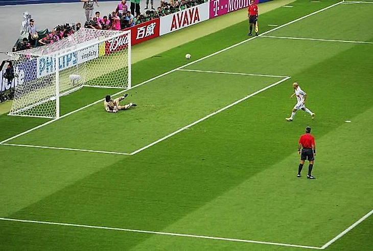 В финале мундиаля на Французов ожидала еще одна «тёмная лошадка» той кампании- Италия. По иронии судьбы в своем последнем матче Зизу противостоял бывшим партнерам и Марчелло Липпи, тренеру который поверил в него в Ювентусе. Итальянцы грубо начали ту встречу и уже на первой минуте Каннаваро жестко встретил Анри в центре поля, француза около трех минут приводили в себя медики, а после Малуда ворвавшись в штрафную был сбит Матерацци, судья указал на одиннадцатиметровую отметку. К мячу подошел Зидан, весь мир замер в ожидании, после короткого разбега, Зизу хладнокровно подсек круглого и мяч парашютом отправился от перекладины в ворота 1:0! Это была фантастика один из самых ярких моментов в истории футбола. Паненка – интуитивное чувство между разбегом и ударом, удар безумца или удар гения, впервые в карьере он поступил эгоистично, сделал что-то исключительно для себя, подарив при этом радость остальным.