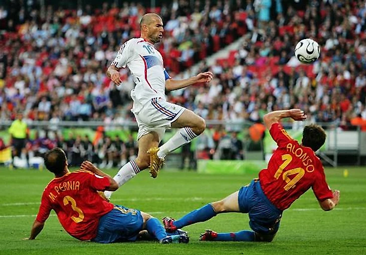 Словив кураж Франция продолжала атаковать и доминировать над соперником но итальянцы быстро потушили боевой запал соперника, на 19 минуте после углового в исполнении Пирло Матерацци переиграл Виейра и отправил мяч над руками Фабьена Бартеза 1:1! Концовка тайма осталась за Италией но во втором тайме инициативу перехватили французы, несколько хороших возможностей чтобы отличится имел Анри, в начале второй половины игры француз раскидал трех защитников но его удар заблокировал Каннаваро, а спустя 15 минут нападающий здорово ворвался в штрафную но не сумел сильно пробить и Буффон парировал его удар. Зидан же полностью контролировал центр поля неоднократно обостряя игру впереди, в том матче его прямым конкурентом был Пирло и несмотря на то, что в итоге итальянца признали лучшим игроком матча, в его движениях на протяжении всей игры чувствовалась осторожность и опасения особенно в моментах когда он противостоял Зизу. Матч закончился вничью.