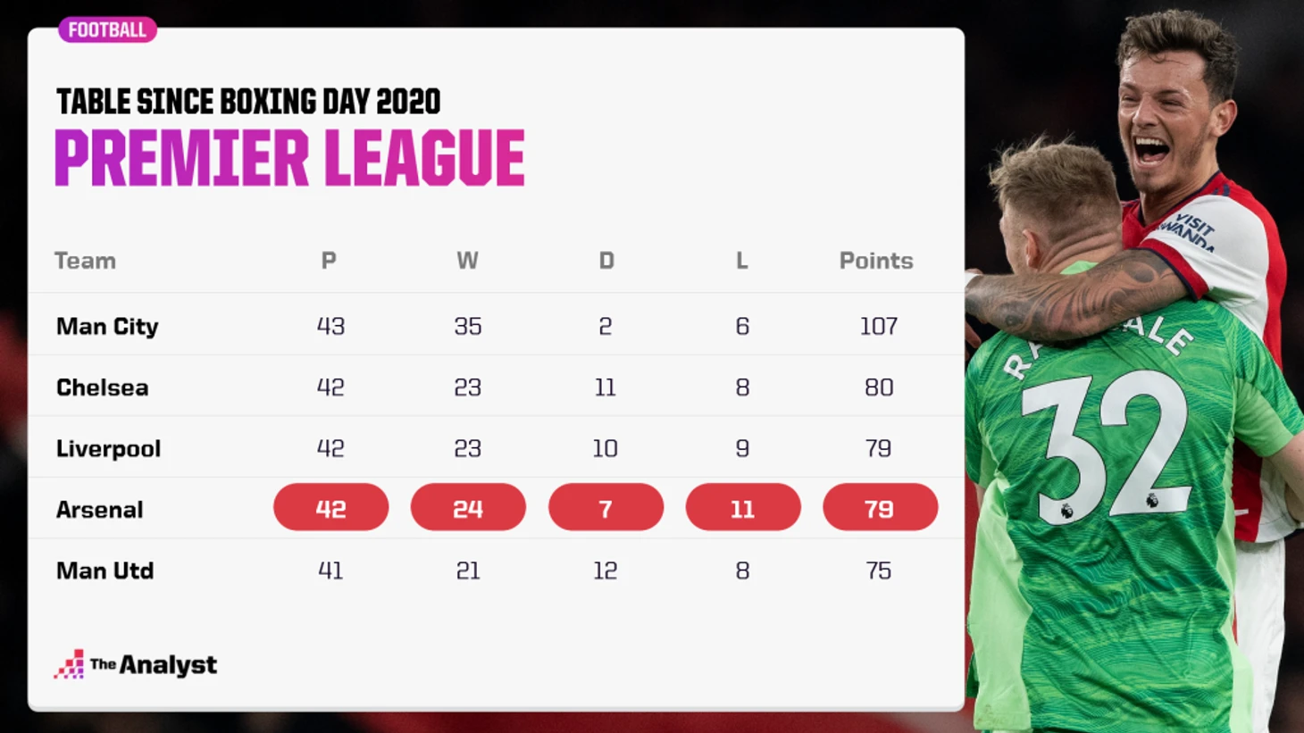 После этого, тренер начал чаще использовать молодежь, среди которых были Букайо Сака (19 лет на тот момент), Эмиль Смит Роу (20 лет) и Габриэль Мартинелли (19 лет). Они привнесли в игру "канониров" столь необходимую энергию. С того дня "Арсенал" набрал 79 очков в Премьер-лиге, больше набрали только "Ман Сити" (107) и "Челси" (80).