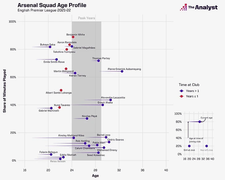Пять из шести первых приобретений Артеты в "Арсенале" были в возрасте 25 лет и старше, единственным исключением стал Габриэль Магальяйнс. Все шесть летних приобретений перед сезоном 21/22 были в возрасте 23 лет и младше.