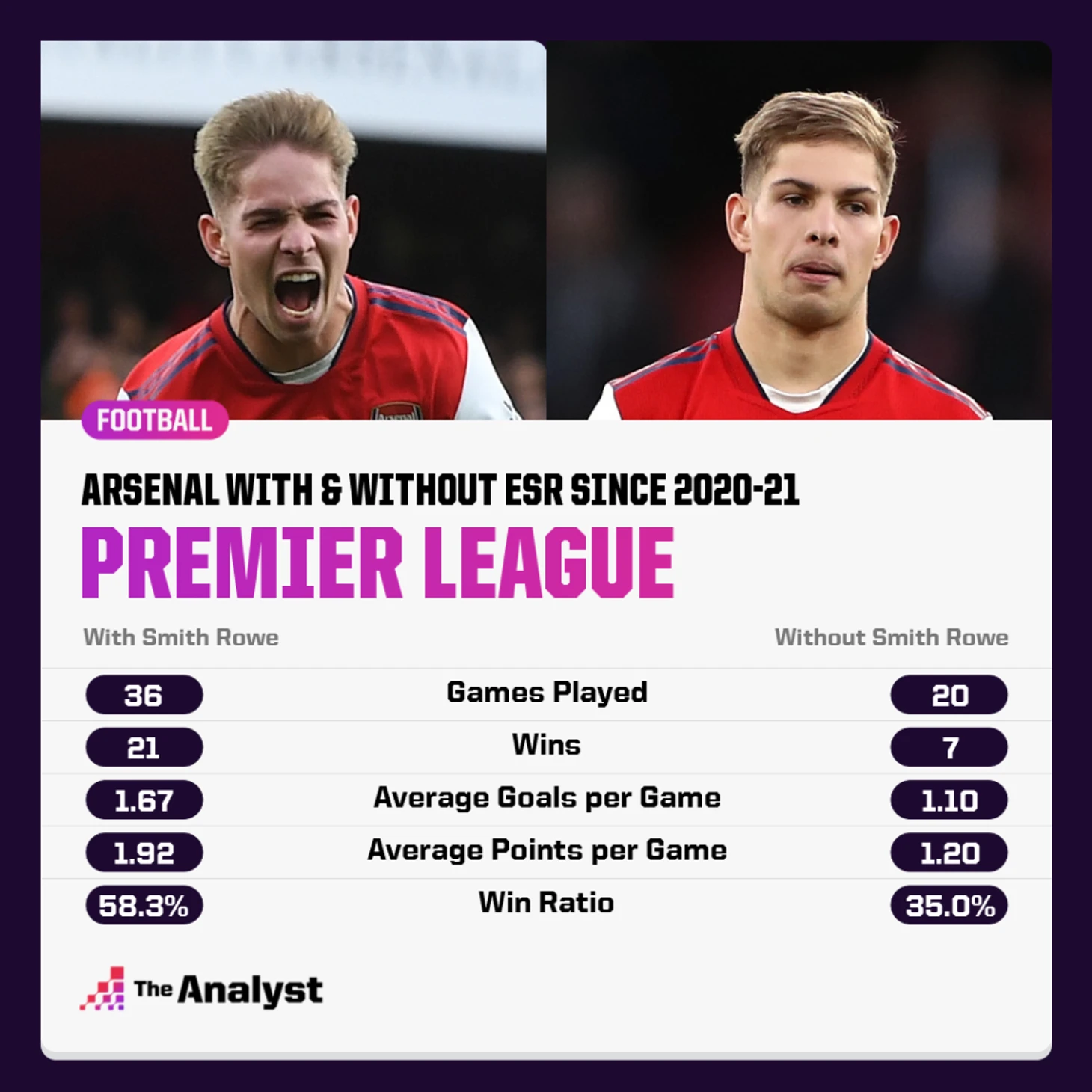 Такой резкий подъем формы во многом обусловлен включением в состав команды Смита Роу. Процент побед "Арсенала" в АПЛ с начала прошлого сезона был на 23% выше, когда англичанин был в составе команды (58%), по сравнению с тем, когда его небыло (35%). 21-летний игрок доказал, что именно он может заполнить креативную пустоту, оставленную ушедшим Месутом Озилом.