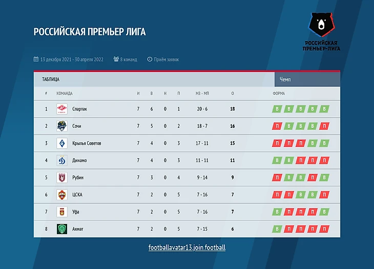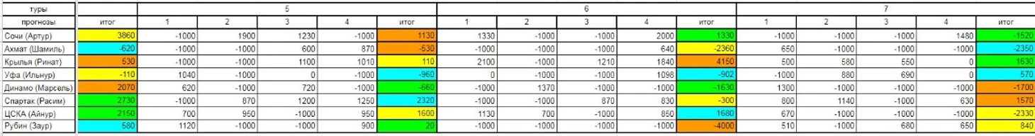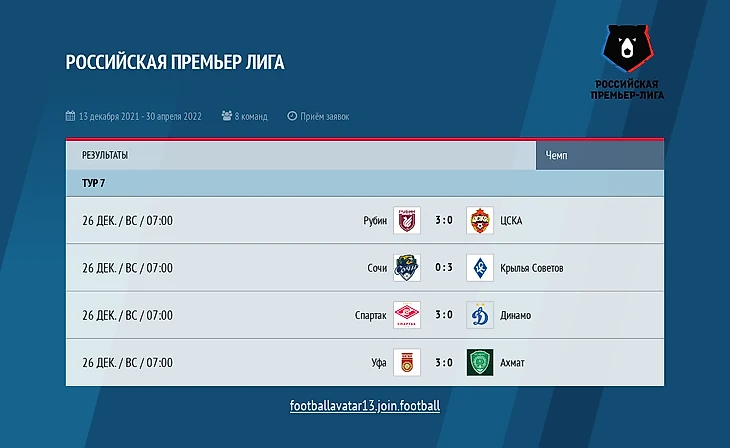 Подошел к концу наш очередной увлекательный турнир, Спартак (имя игрока скрыто) победил Динамо и воспользовался осечкой прямого конкурента Сочи