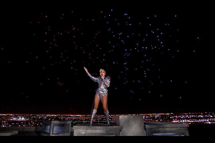 Танцы маскотов, гонки младенцев и выступление звезд мирового уровня — как только ни развлекают болельщиков во время соревнований. На Супербоуле, самом дорогом из подобных мероприятий, были и Мадонна в образе египетской царицы, выехавшей на поле на огромной золотой колеснице, и хор «роботов» от The Weeknd (сам артист, будучи хедлайнером Halftime Show, вложил в выступление семь миллионов долларов). А на Супербоуле-2017 состоялось патриотичное световое шоу от Леди Гаги. 300 дронов взмыли в небо и выстроились в флаг США. Так певица подарила беспилотным технологиям билет в event-сферу.