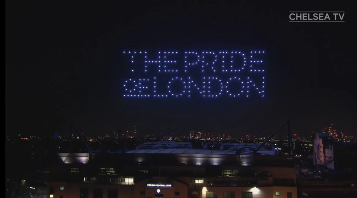 200 дронов, Лондон. Футбольный клуб «Челси» организовал грандиозное шоу в честь победы команды в Лиге чемпионов УЕФА. В небе над Стэмфорд Бридж возвышались и эмблема «Челси», и кубок, но больше всего зрителям запомнились огромное бьющееся сердце и фраза For the fans. Так клуб подчеркнул благодарность болельщикам за их поддержку.