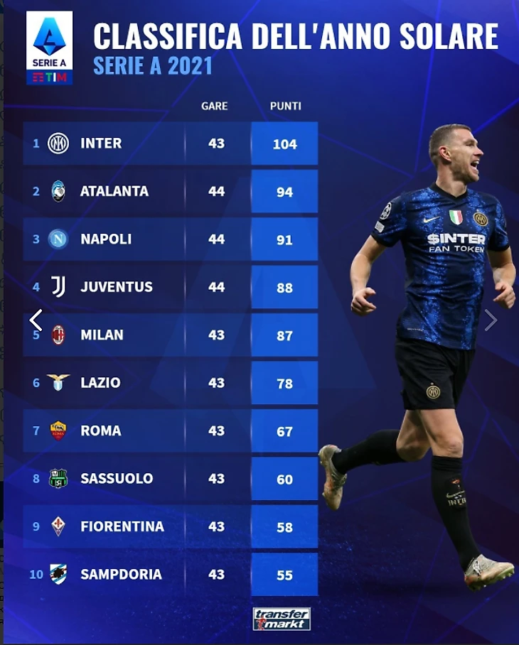 За 2021-й год «Милан» набрал 87 очков в Серии А.