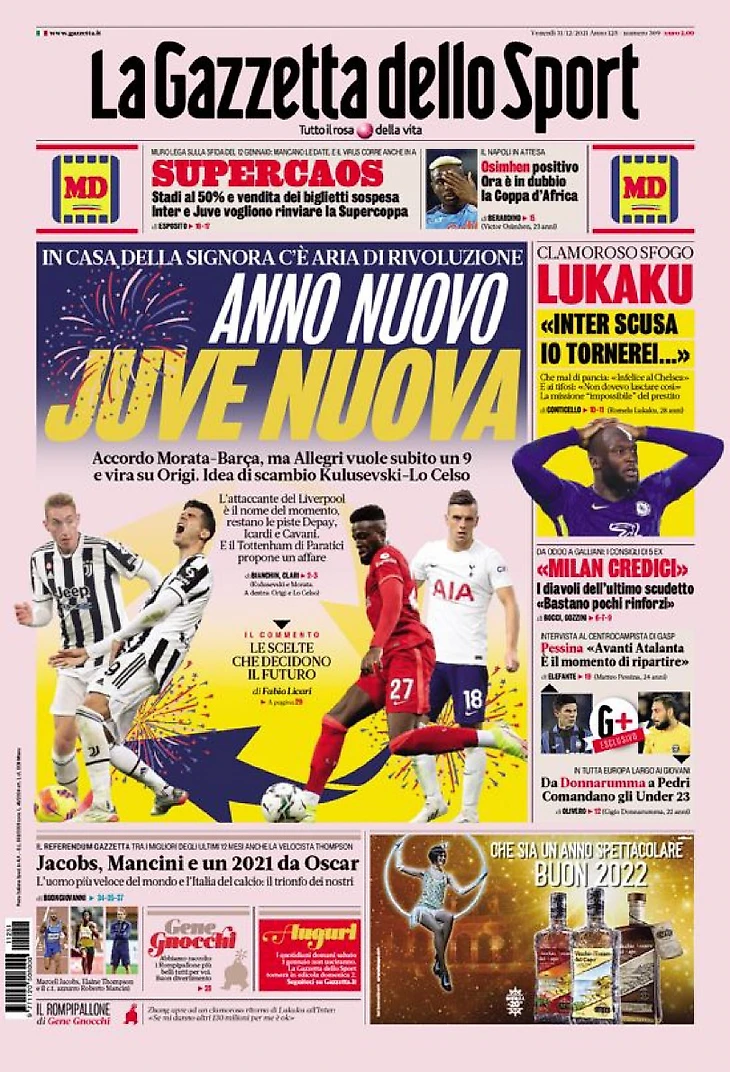 Новый год, новый «Юве». Заголовки Gazzetta, TuttoSport и Corriere за 31 декабря
