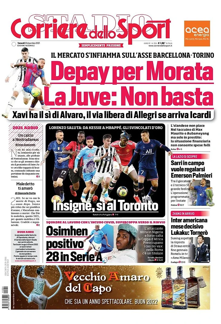 Возможные трансферы «Юве», вероятный перенос Суперкубка, положительный тест у Осимхена, а также шокирующее интервью Лукаку – в утреннем обзоре заголовков итальянских спортивных изданий в блоге «В гостях у Кальчо».