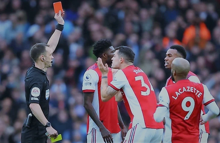 Далее в матче будет очень много жёлтых карточек, половина из которых вылетала по не до конца ясным причинам. После того, как Сити сравняли счёт, они чуть не привезли себе гол... сами. "В"апорт выключил циркуля, но решил головой скинуть мячь в ворота через Эдерсона. Благо Натан Аке вчера не принимал шампанское и сделал чемпионский автосэйв с ленточки. Ещё не успели отссмотреть повторы этого спасения года, как Габриел схватил красную карточку. Вау, это оказалась лишь вторая жёлтая, (первую он получил 2 минуты назад сразу после пенальти) но Арсенал теперь в меньшинстве.