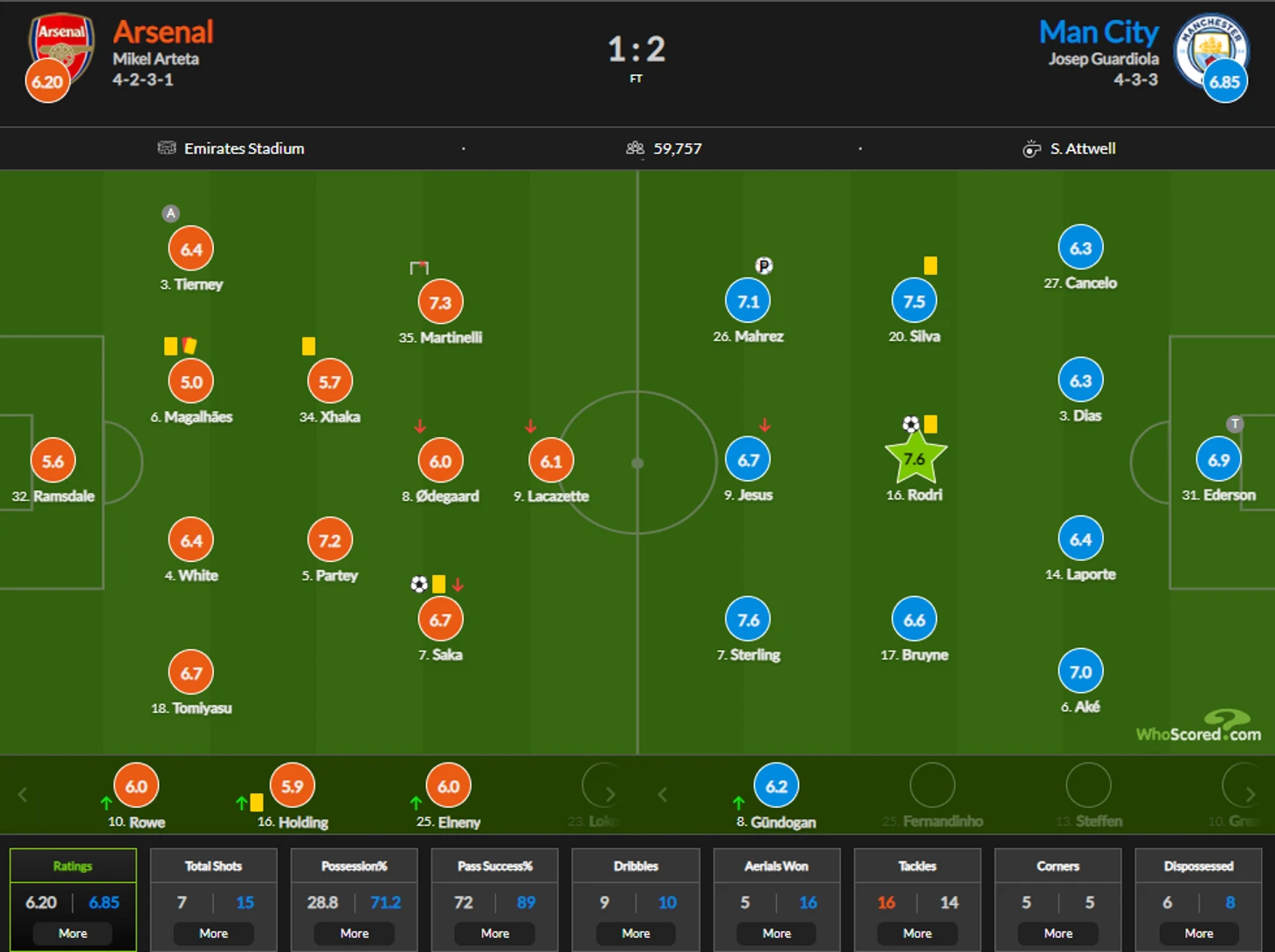 Тирни, Ляказетт, Сака, Парти и Томиясу показали отличный уровень, но партнёры по команде подвели в деталях. Привоз пенальти Джаки - притча во языцех. Только не говорите, что вас это удивило. Вторая жёлтая Магальяйнса - абсурд, мотив которого сложно объяснить логически, но и это было вполне допустимо. Промахи Мартинелли с убойных позиций? Это всё-таки не Сон, ребята, который должен был стабильным в каждом матче, но дело даже не в этом. Симбиоз индивидуальных допустимых лагов сегодня зашкаливал, что и испортило Арсеналу всю игру. Произойди что-то одно из этого перечня - не беда, переживём, но сегодня звёзды сошлись именно таким образом.