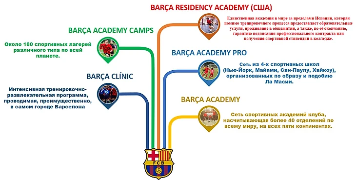 С момента создания «Ла Масии» в 1979 году, «Барселона» прошла большой путь развития от фермерского домика до одной из лучших и крупнейших сетей футбольных академий, раскинувшейся по всему земному шару.