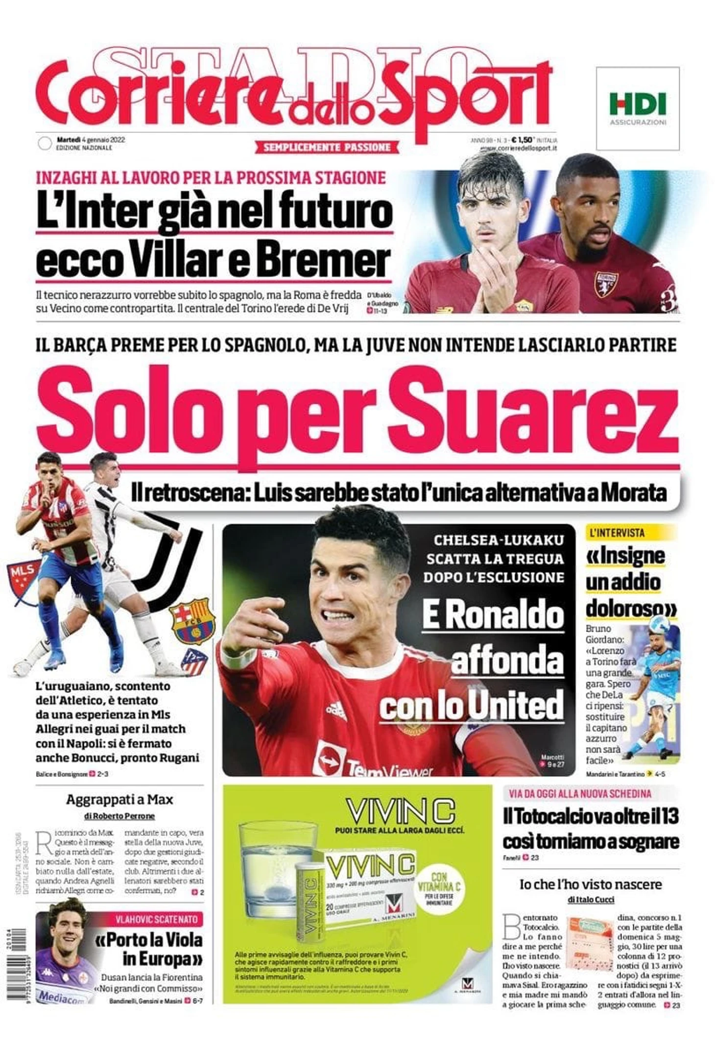 Corriere в свою очередь, выдвигает старого-нового кандидата: «Только за Суареса». «Подробности: Луис может быть единственной альтернативой Морате. «Барса» давит на испанца, но «Юве» не намерен его отпускать. Уругваец, недовольным положением в «Атлетико», соблазнён опытом поиграть в МЛС. Аллегри в беде перед матчем с «Наполи»: не сыграет также Бонуччи, готов Ругани».