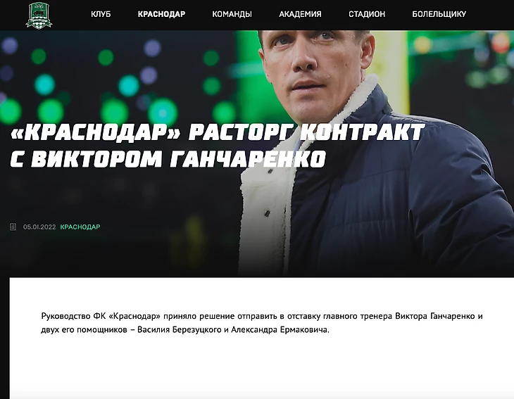 «Руководство «Краснодара» приняло решение отправить в отставку главного тренера Виктора Гончаренко и двух его помощников – Василия Березуцкого и Александра Ермаковича», – такая неожиданная новость в среду появилась на официальном сайте «Краснодара».