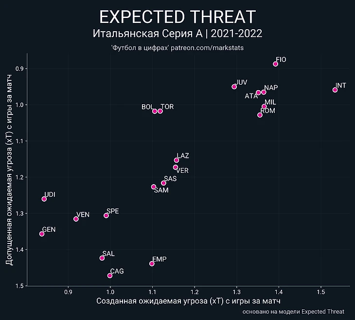 Последний важный показатель для соотношения атаки и обороны xThreat (ожидаемая угроза).