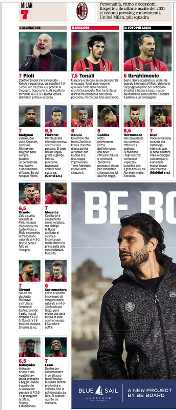 Франк Кессье влепил пару тосканцам и со спокойной душой отправился в расположение национальной сборной, став по версии La Gazzetta dello Sport лучшим в составе победителей "Эмполи". Помимо ивуарийского Танка в Африку поехали на континентальный форум алжирец Беннасер и сенегальский защитник красно-чёрных Фоде Балло-Туре.